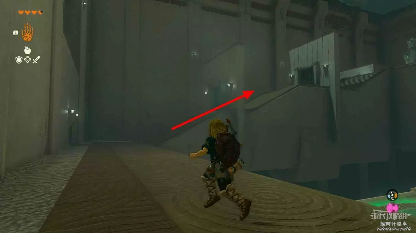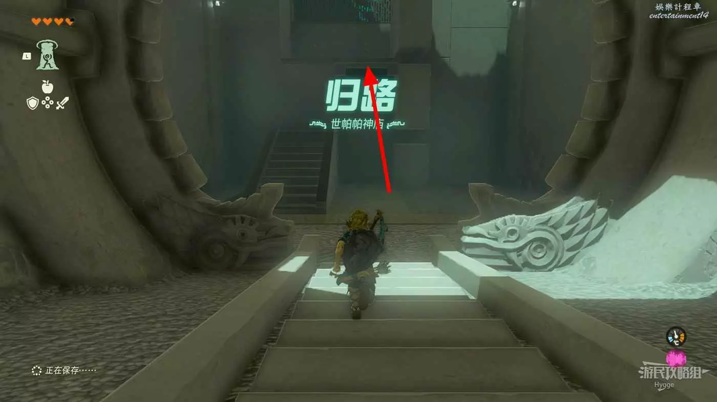 進入神廟後走到台階右側,等移動平台來到正上方時使用通天術即可抵達上層。