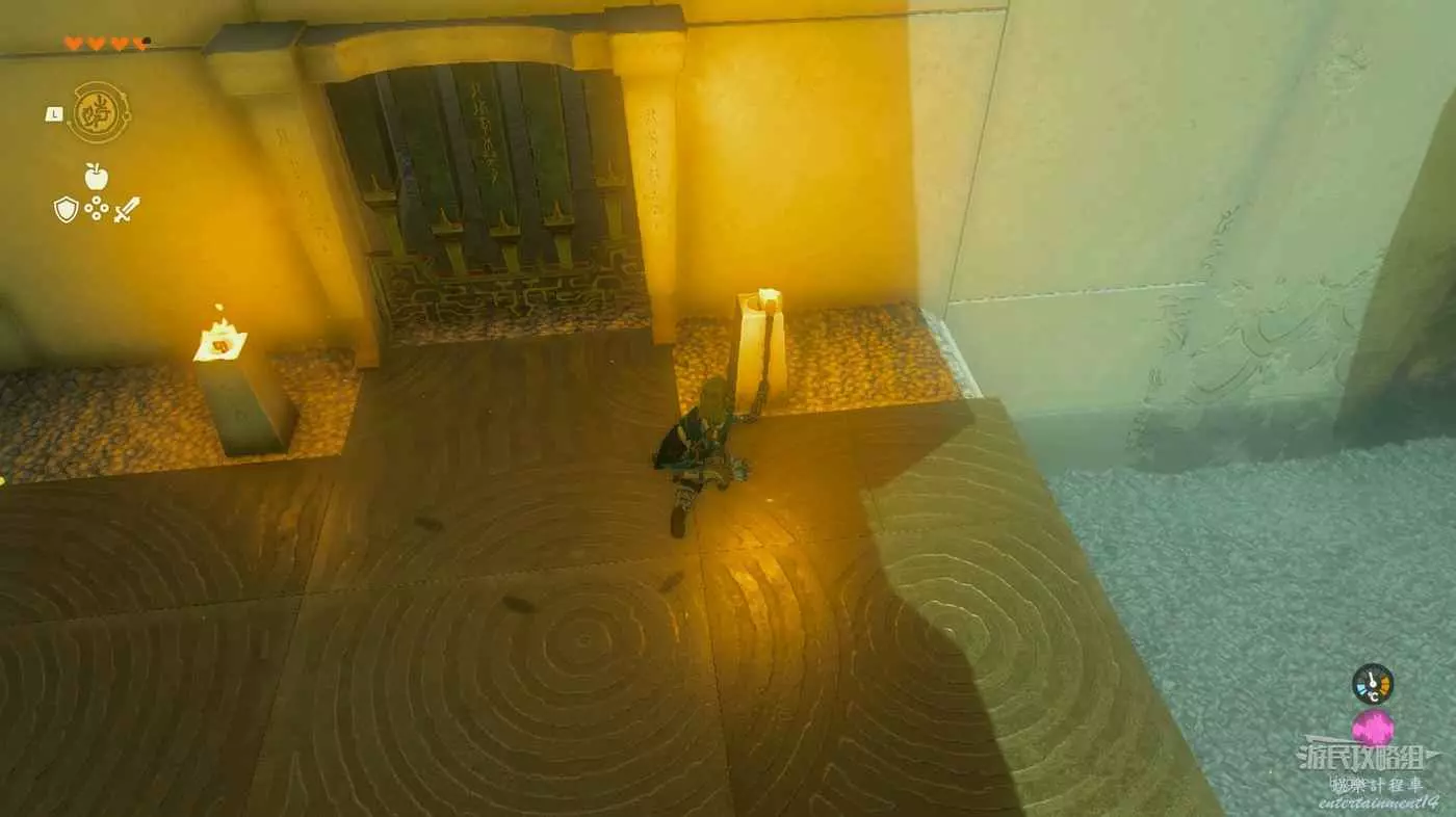在兩個門中間使用倒轉讓小石球再次回到第一個坑中即可完成該神廟。