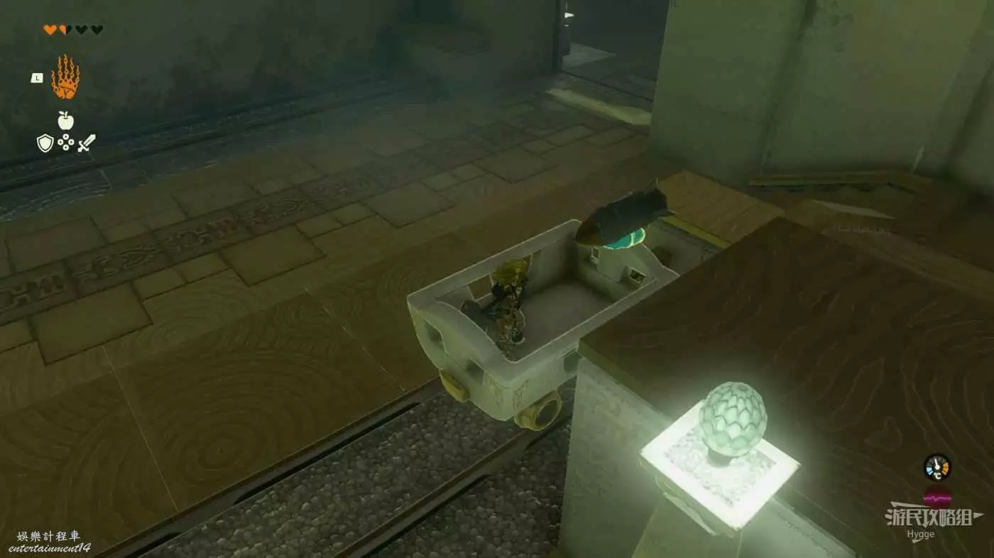 在礦車上裝一個向上的火箭,跟隨礦車一起飛到孔鐘後即可拿到該寶箱。