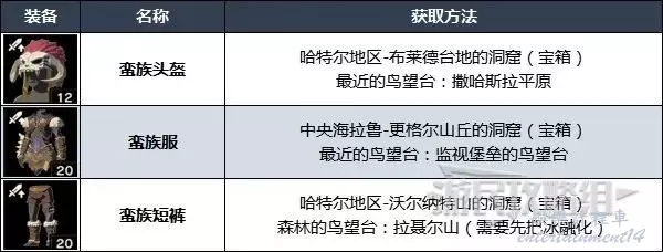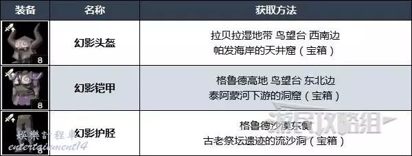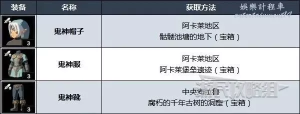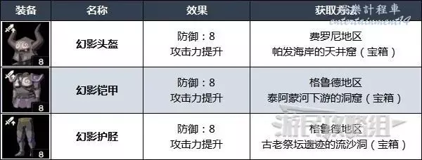 ※由於篇幅限制,下方列出的裝備具體位置和獲取方法請參考後文。