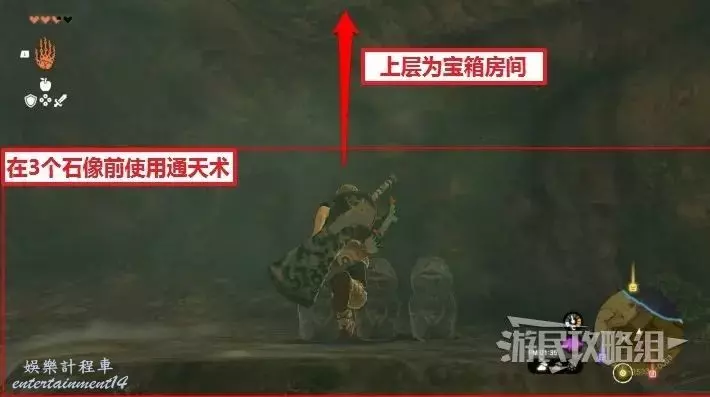 布萊德台地的洞窟位於撒哈斯拉平原鳥望台和拉聶爾山鳥望台之間。進入洞窟後往石像的方向前進,最深處有3個石像,在朝向右側神像的地方使用通天術就能找到。