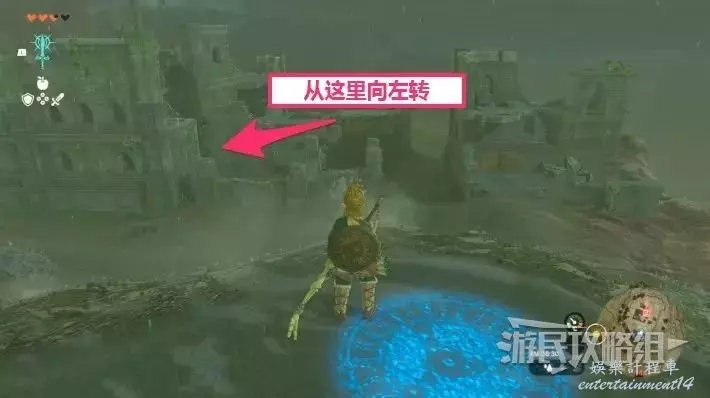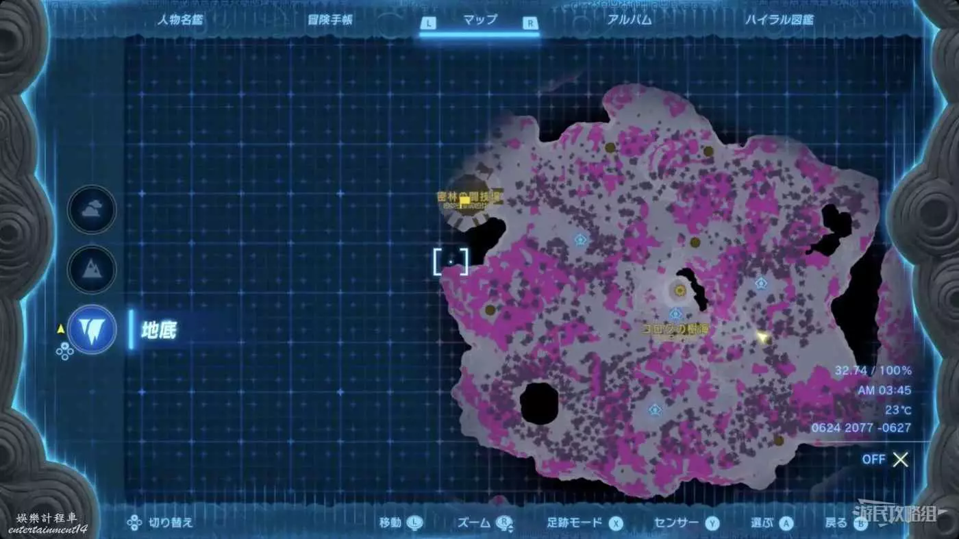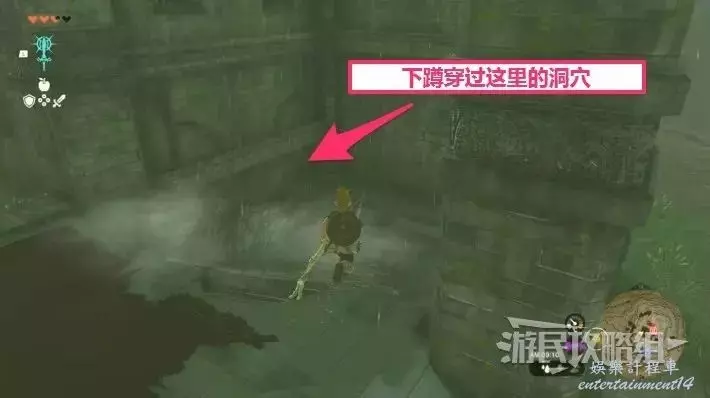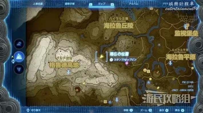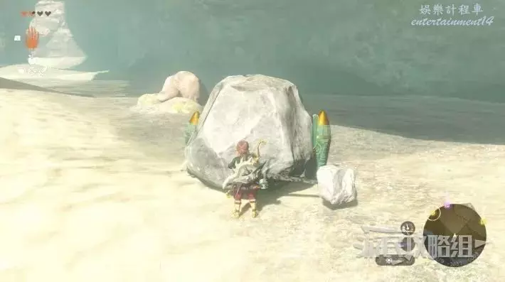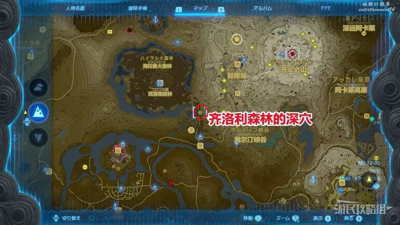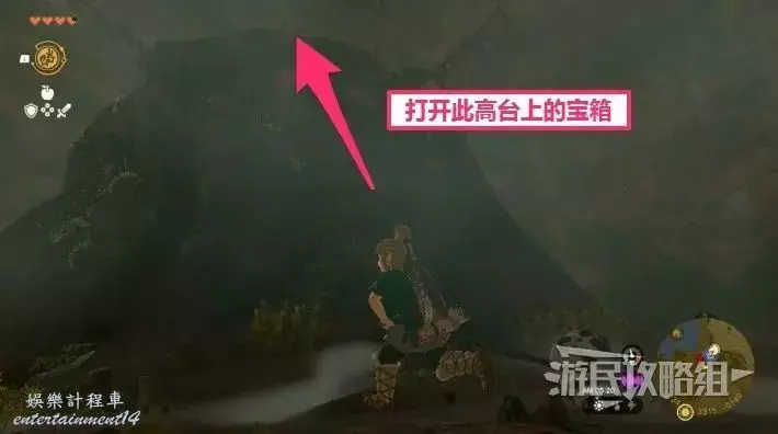 更格爾山丘位於監視堡壘鳥望台的東北邊。進入洞窟後在洞頂有夜光石的附近用炸彈花+箭射擊將其破壞掉,即可進入寶箱所在房間。