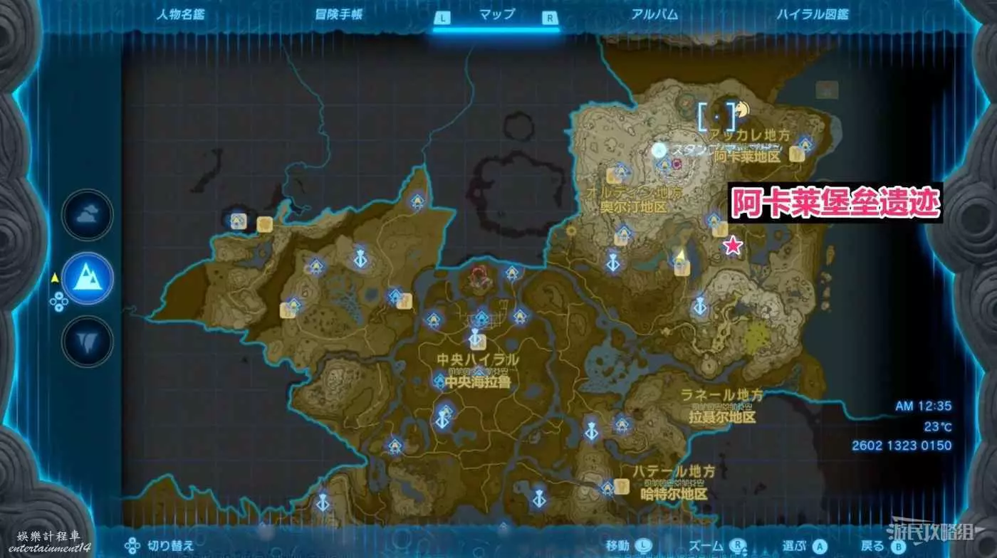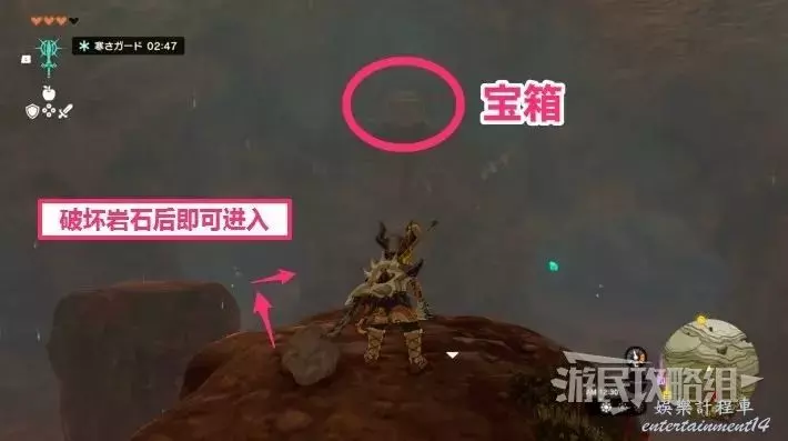 古老祭壇遺跡位於格魯德沙漠東邊,周圍有多個流沙坑,參考下圖位置進入正確的流沙坑即可找到寶箱。