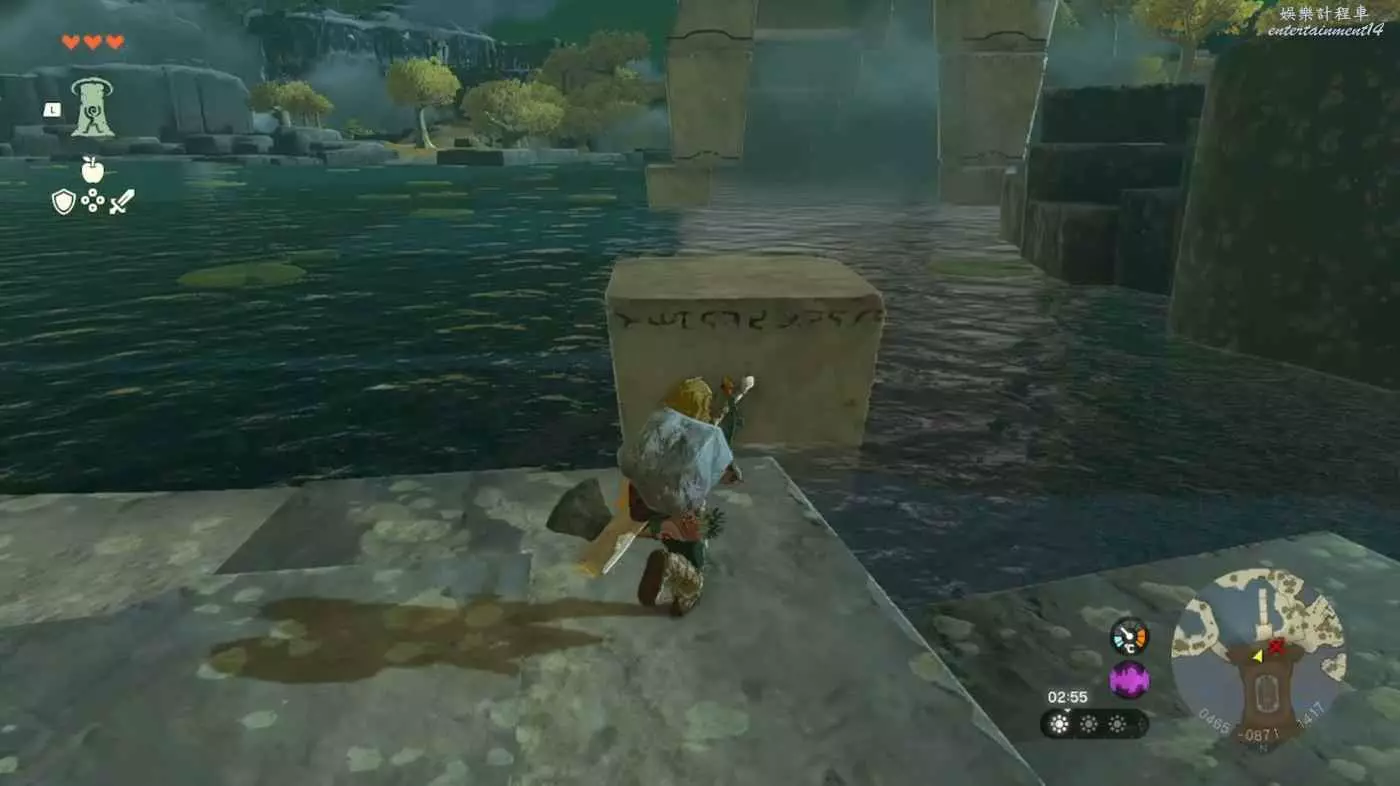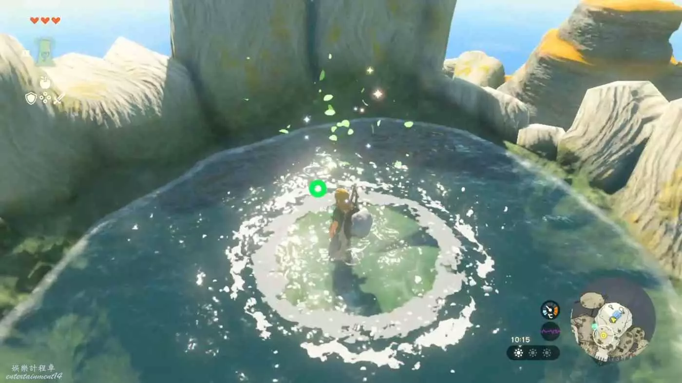 直接從時之神殿往池子裡跳就能看到下圖這個東西了。因為只在神殿的其中一邊有池子,所以很好找。