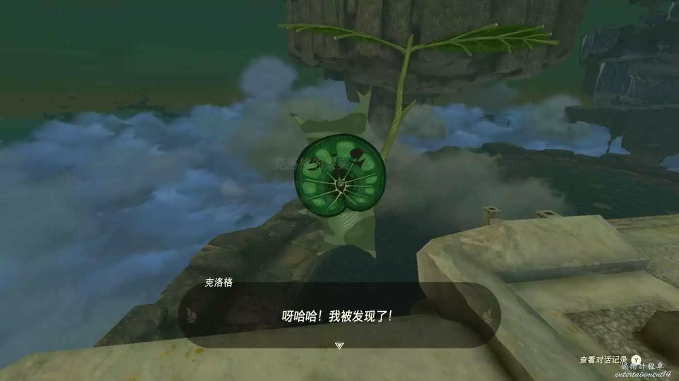 比如在我們初始平台的上方有一個樹洞,樹洞的荷葉上有一個《曠野之息》中呀哈哈隱藏的如下圖的那種特殊光線。直接調查就可以了。