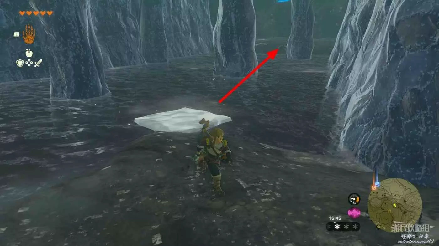 進入洞窟後我們可以引誘冰雪萊克噴吐冰霧攻擊,冰霧落在水面會形成一個個的正方形冰板。