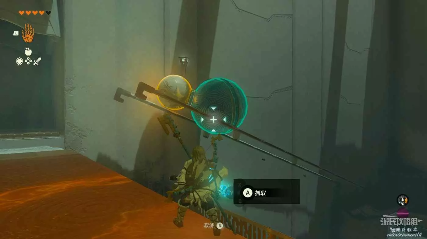 之後我是先將石球放在牆壁的豁口處,再搬下來跳上去後用倒轉能力到達的上層。