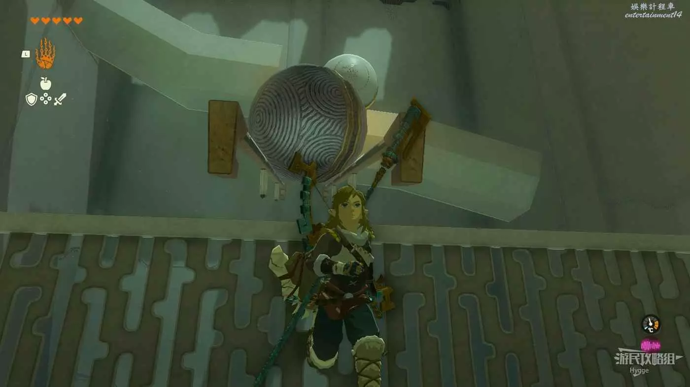 隨後大石球會帶著小石球從滑軌上滑下來。鬆手後塊離開滑軌正面,否則會被石球撞掉一顆心。