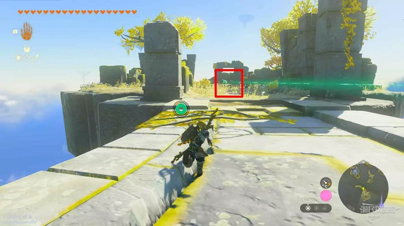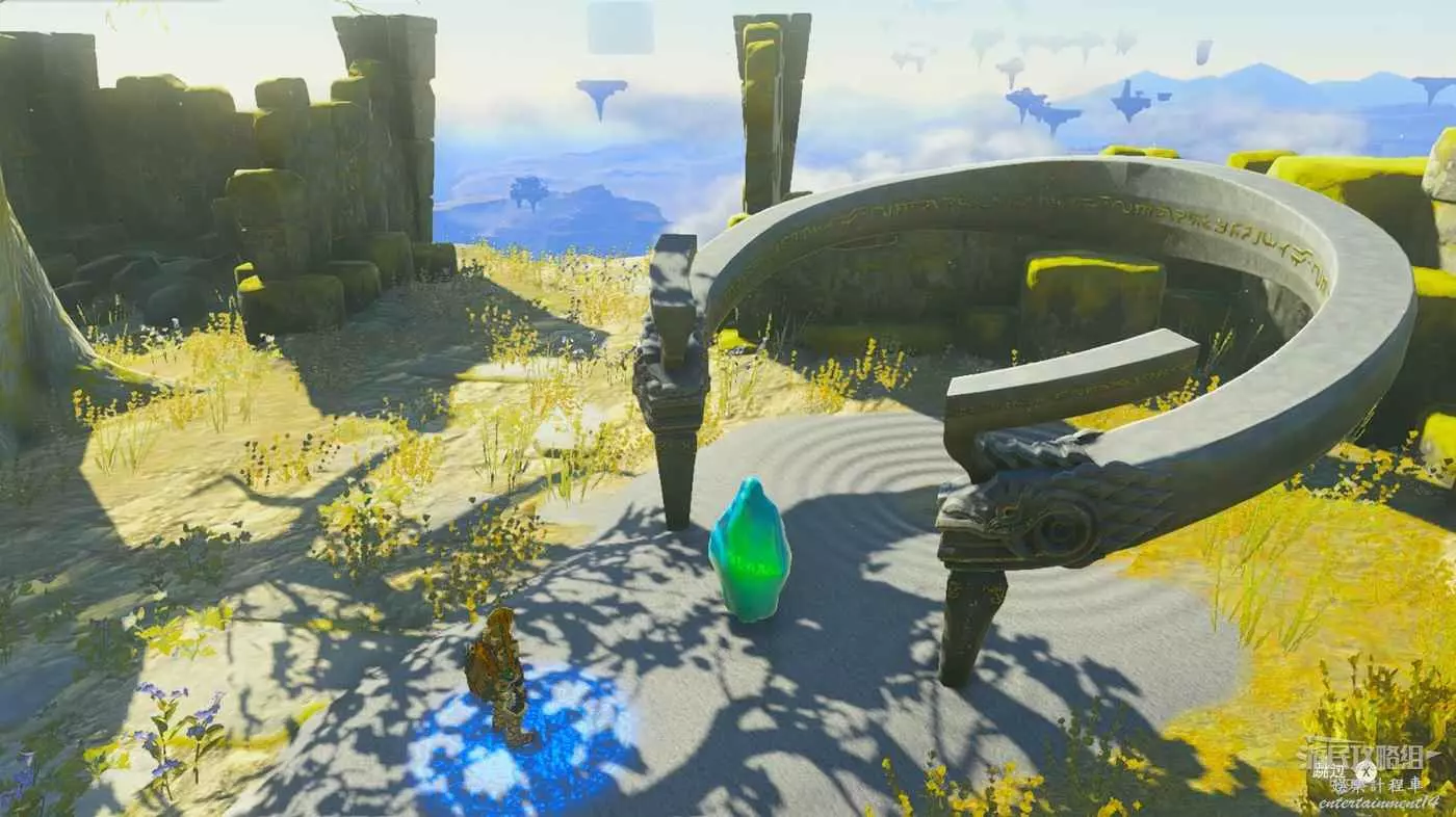 先來空島另一側觸摸紋章啟動空島上的機關。