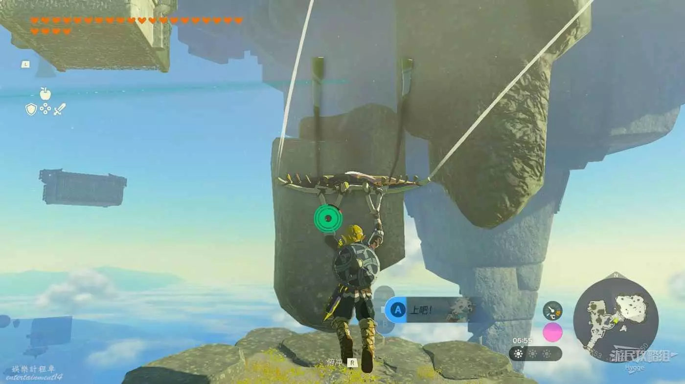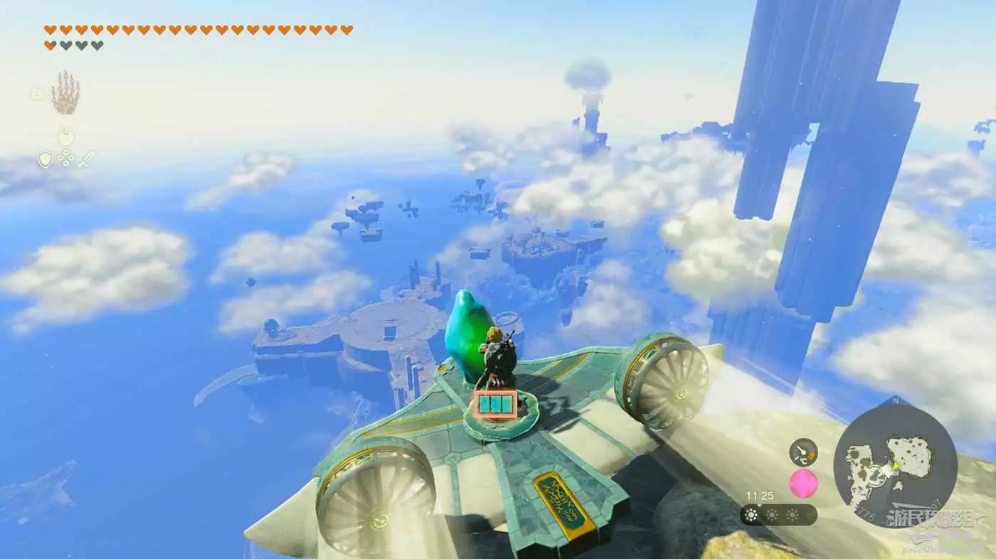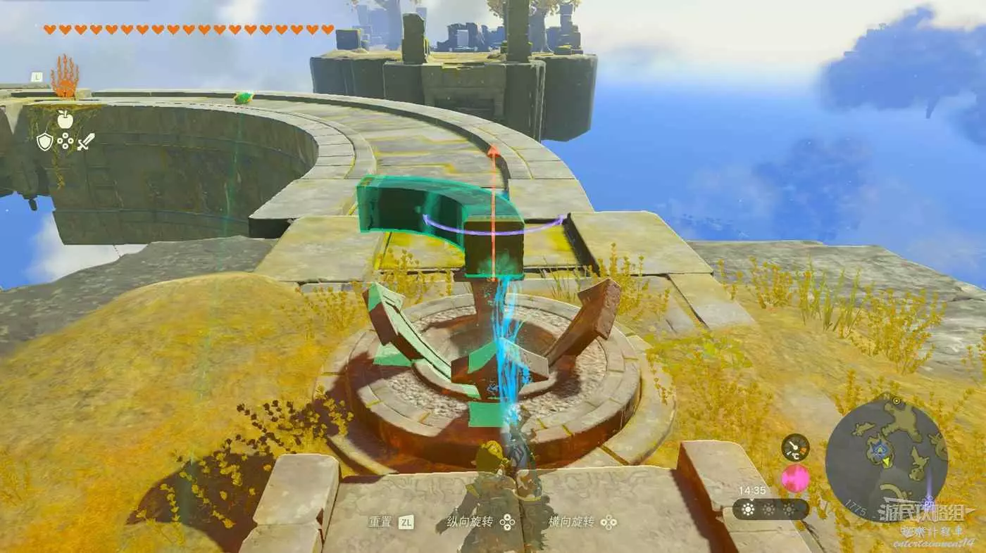 隨後來到空島另一側操控機關,將前方和左側的空島連結在一起。