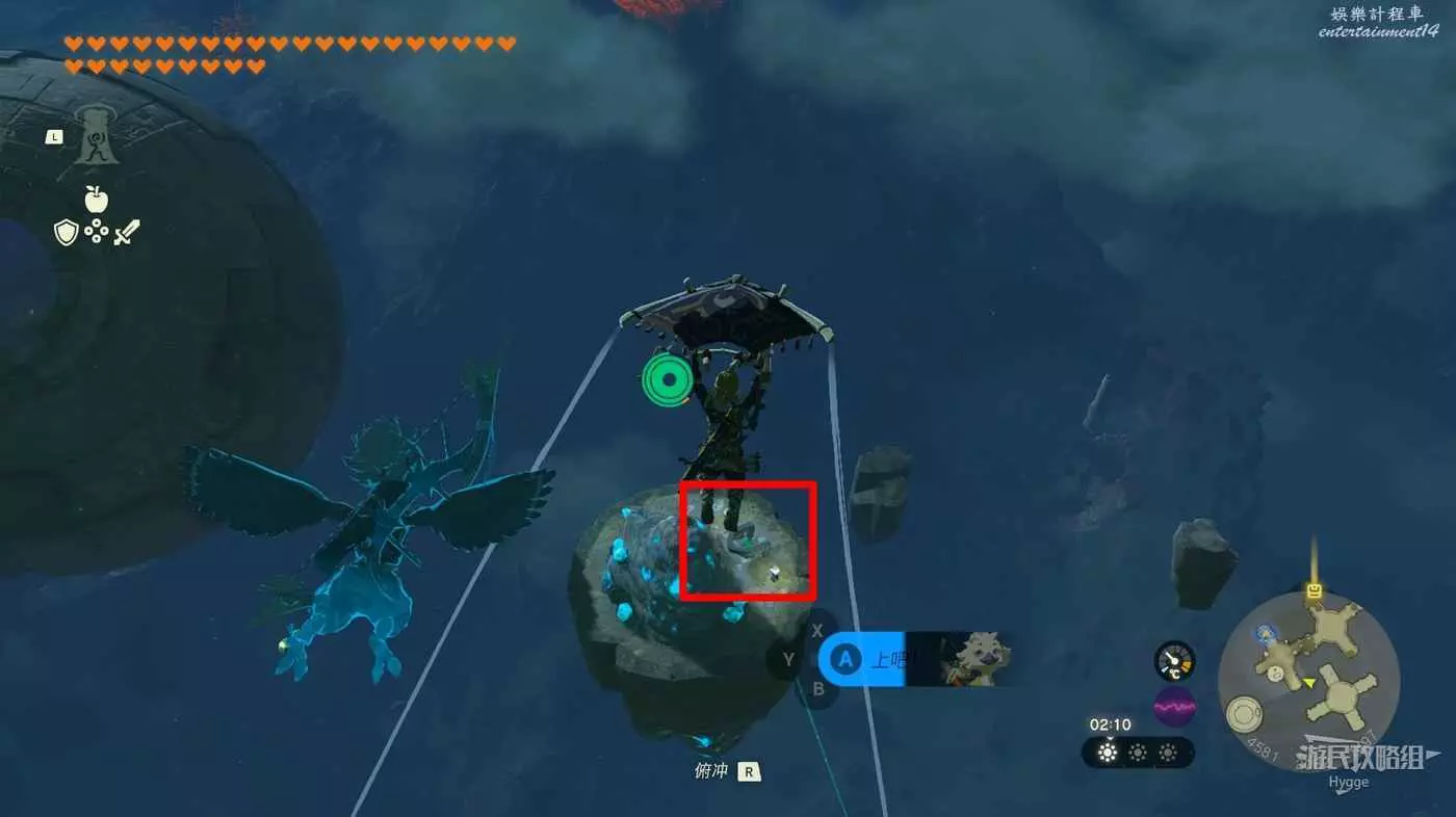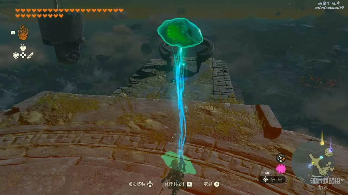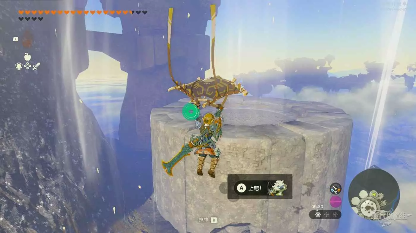 隨後來到空島另一側操控機關,將前方和左側的空島連結在一起。