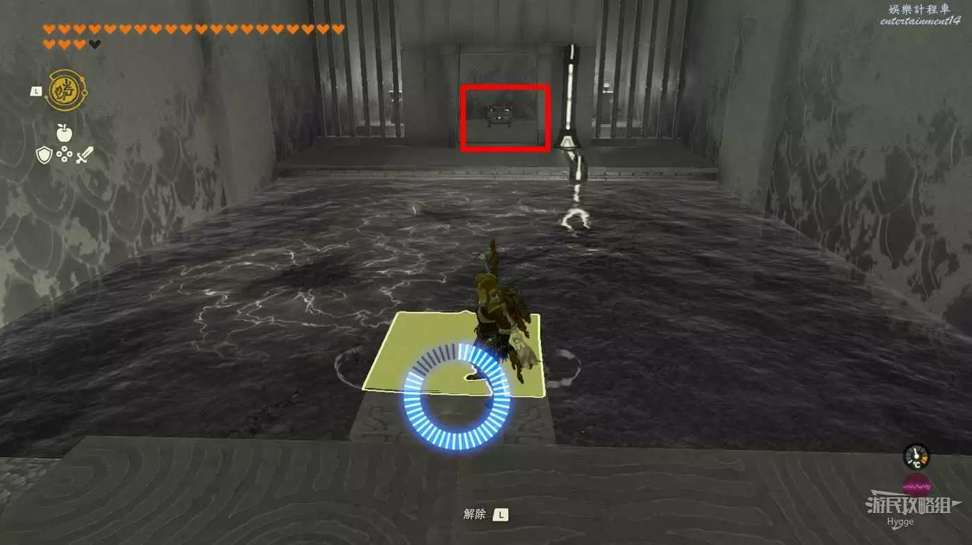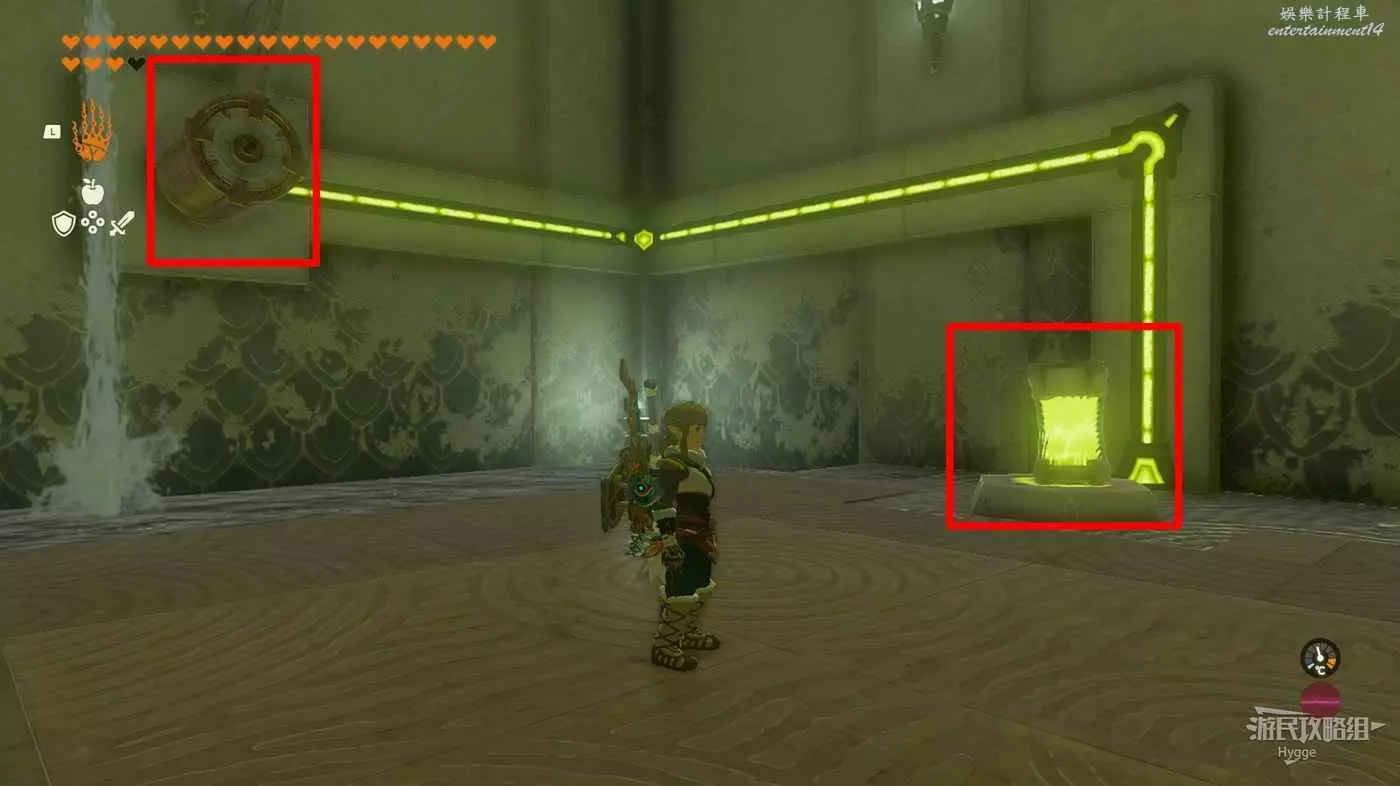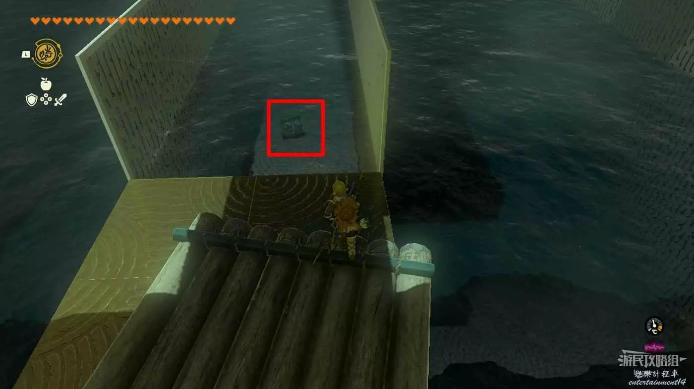 連續擊打開關直到有一個寶箱位於下圖所示位置後,再擊打一次開關。