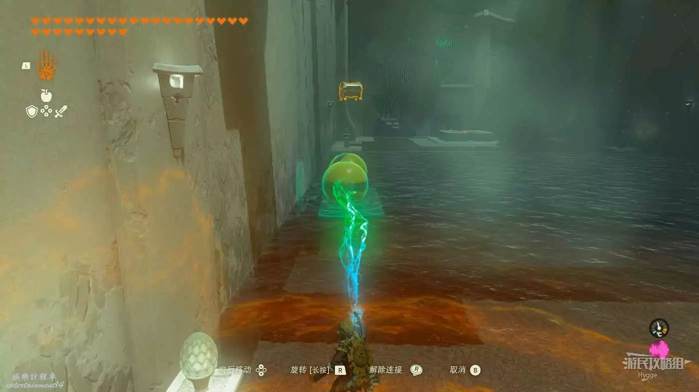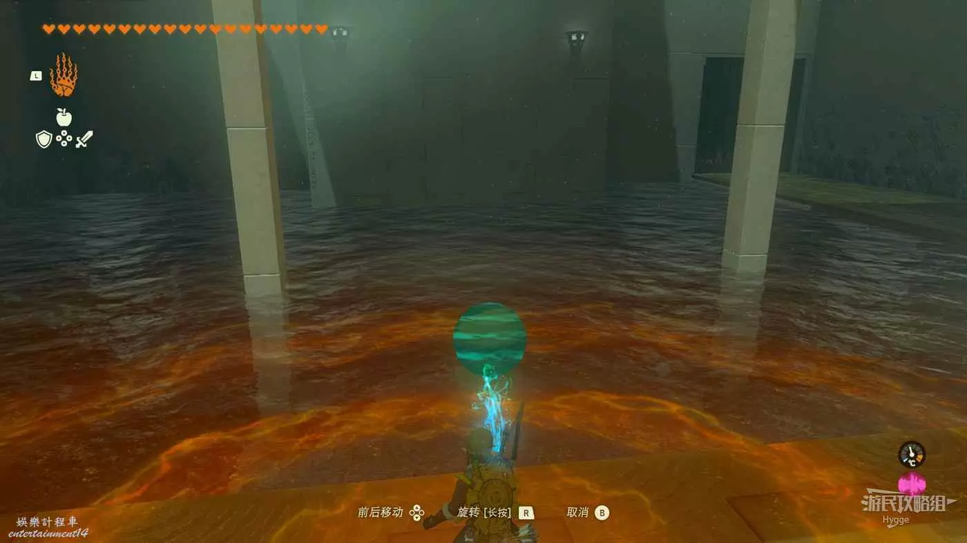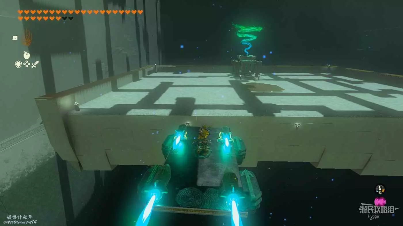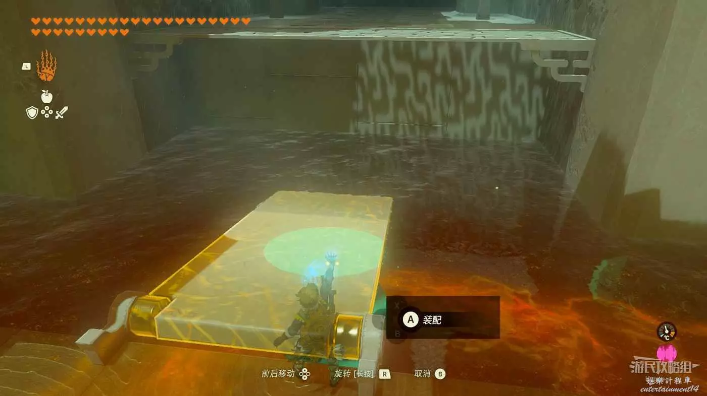 進入神廟後跳至下層,將大石球安裝在板車上啟動板車穿過岩漿。