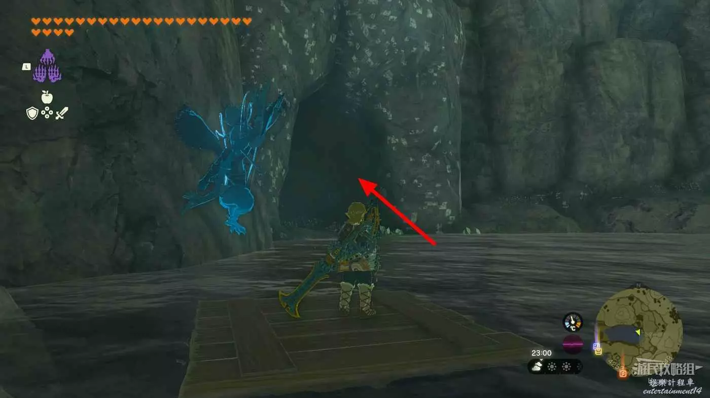 滑翔至深處的山洞中即可找到該神廟,如果不進行任務直接來到此處,神廟所在山洞的大門是關閉的。