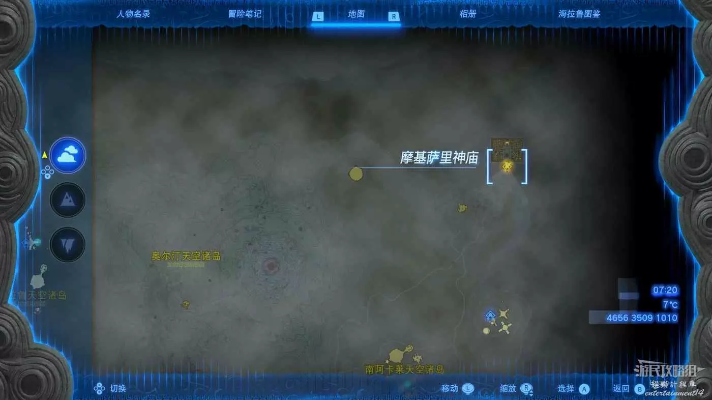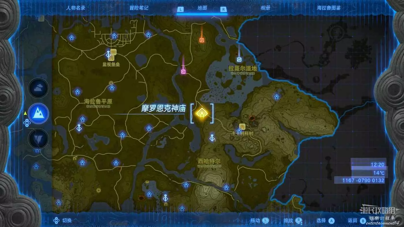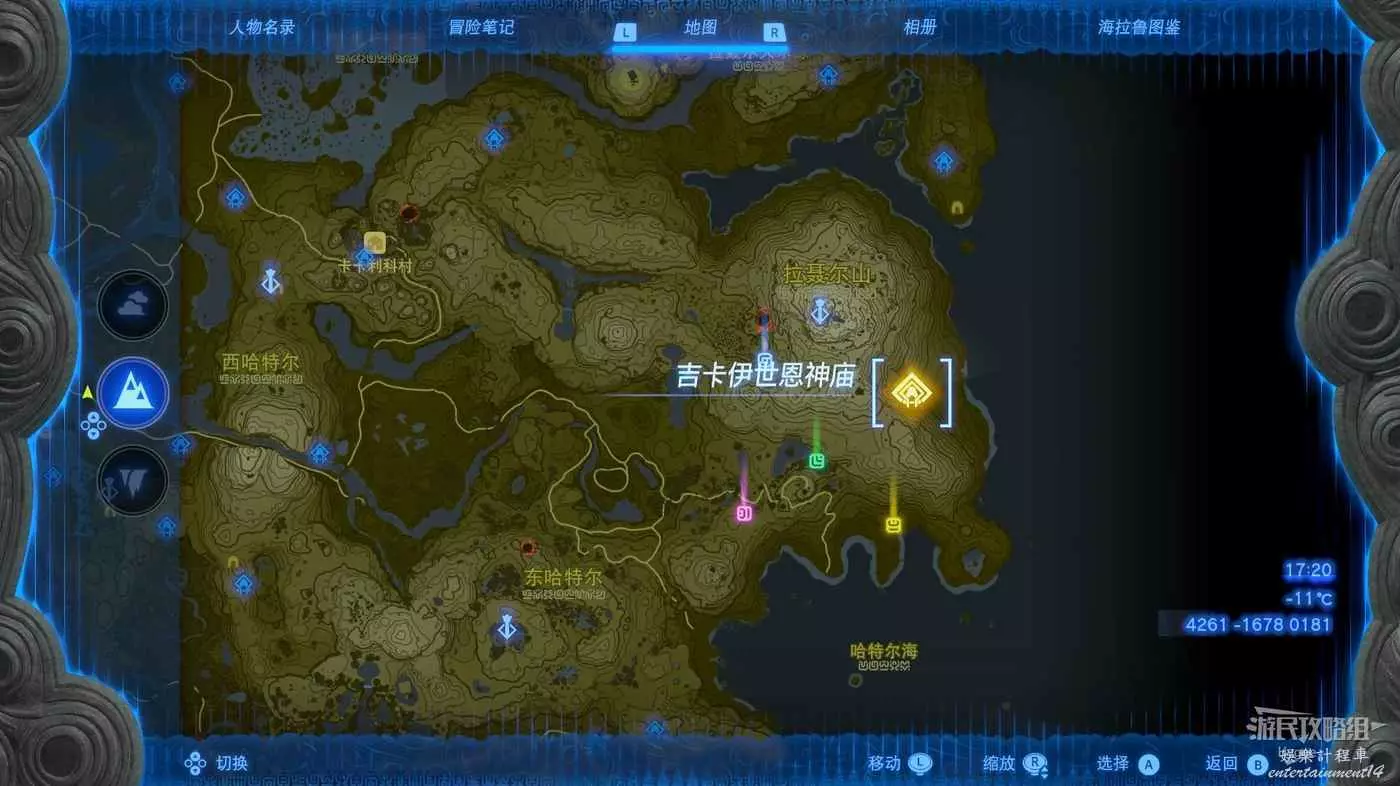 建議在挑戰該神廟前先前往卓拉領地推進主線直至血會能力【攀瀑】,隨後前往下圖標記位置。