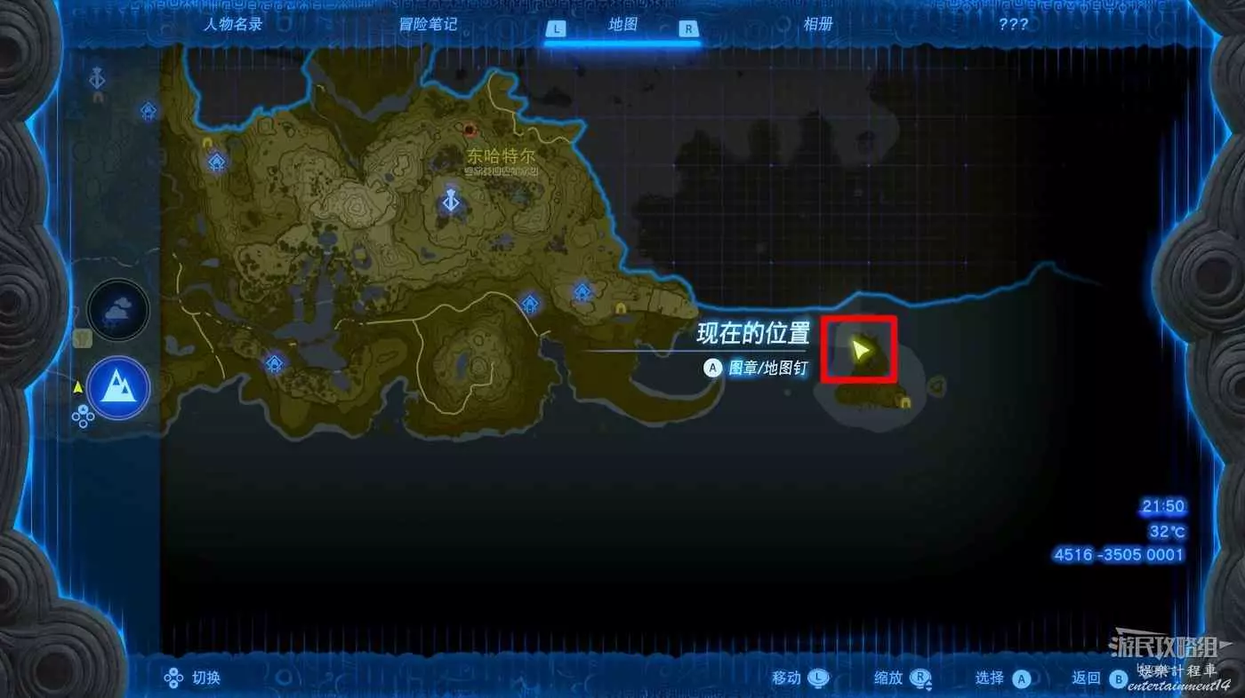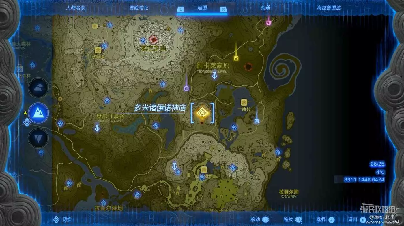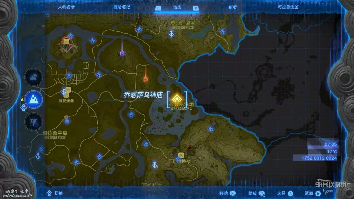建議在挑戰該神廟前先前往卓拉領地推進主線直至血會能力【攀瀑】,隨後前往下圖標記位置。
