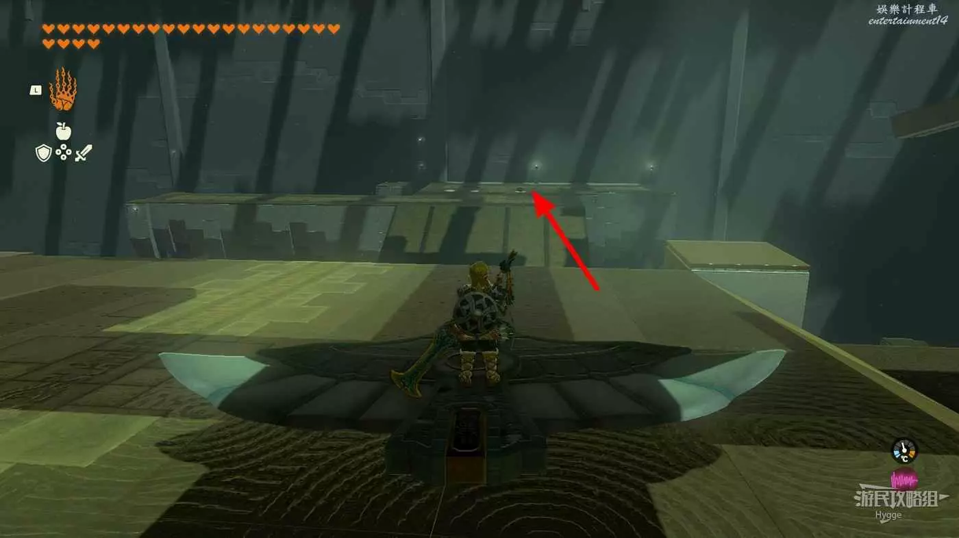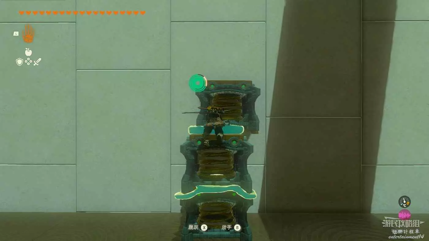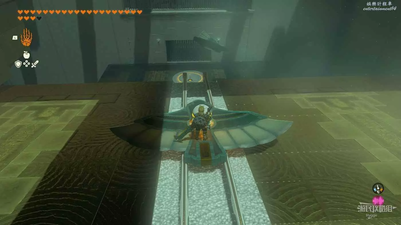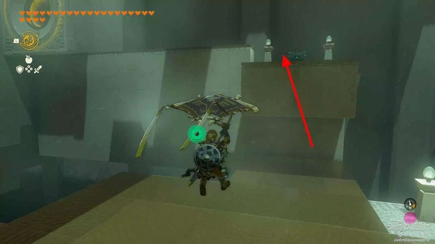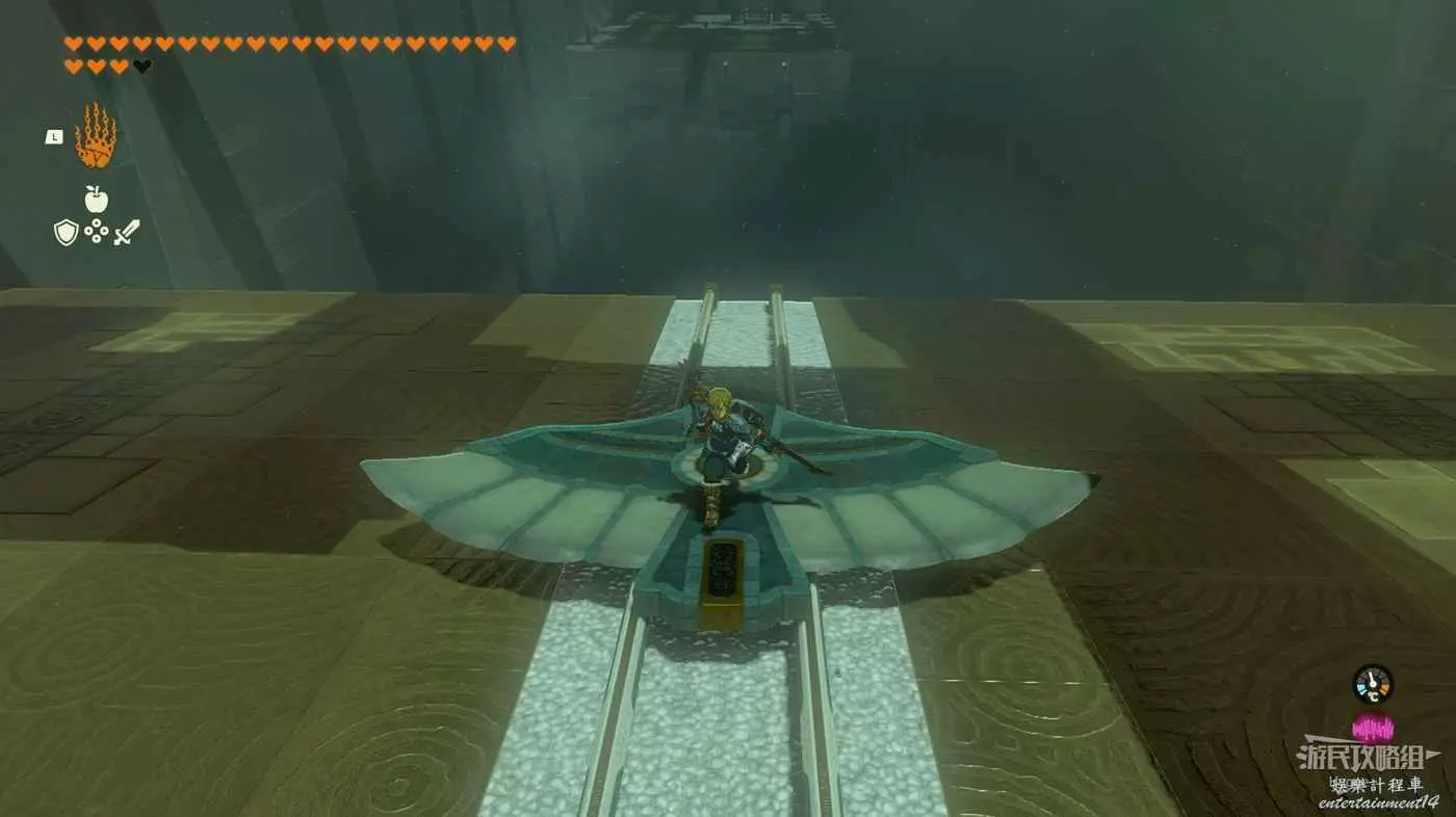 進入神廟後先通過前方的機關彈至空中,滑翔抵達上層。