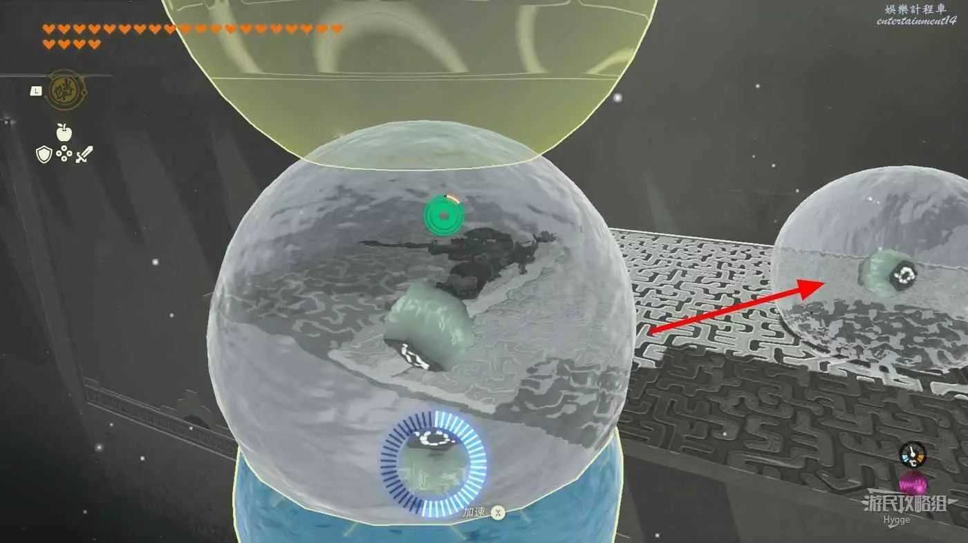 利用空島上的機關將我們打入圓球內部。