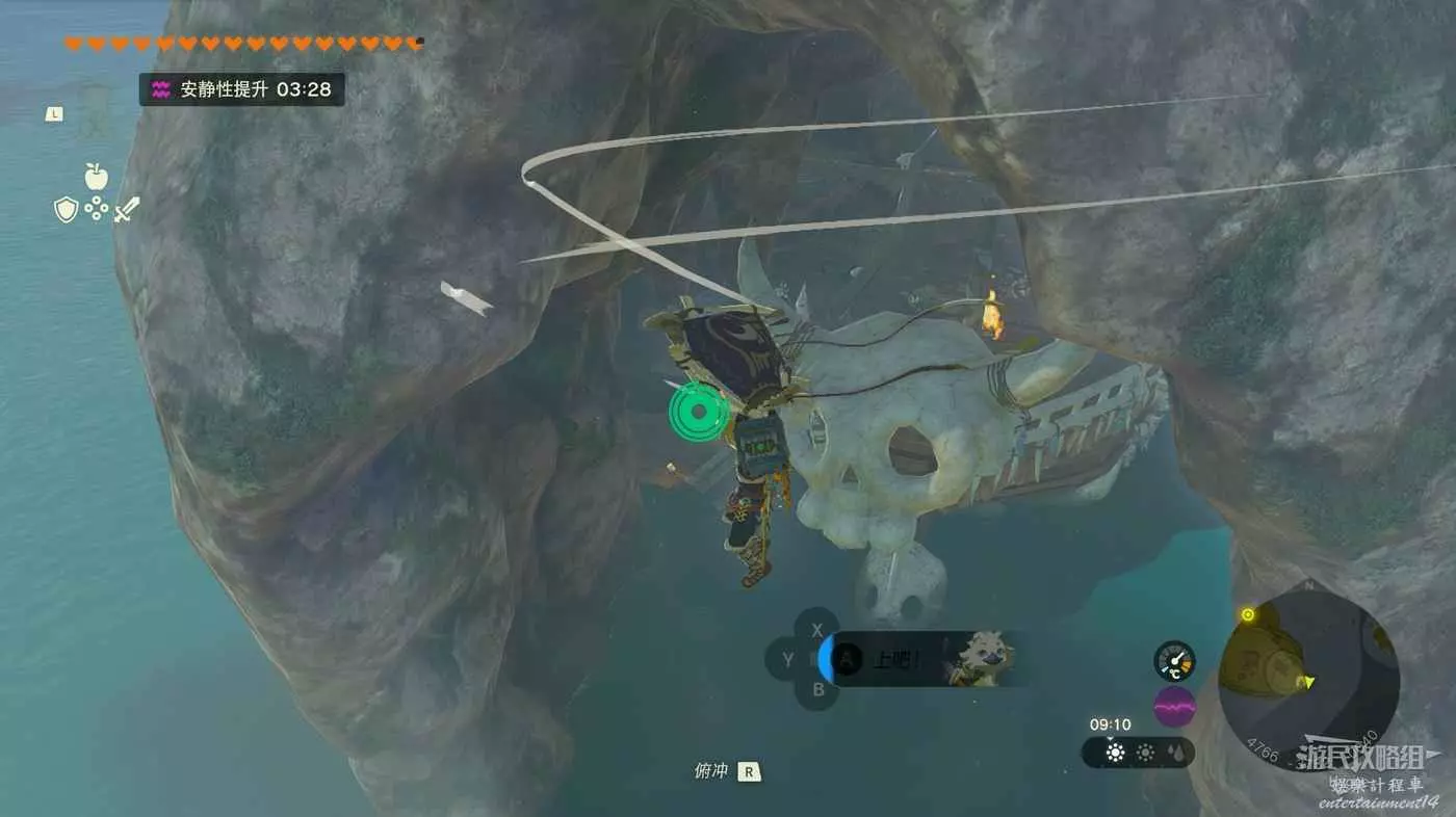 來到島的頂部滑翔至島的背面可以發現一個巨大的山洞。