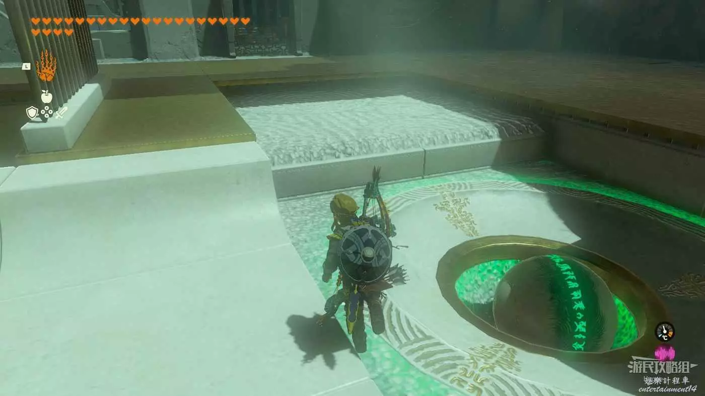 回到神廟入口用同樣的方式將球打入遠處的坑中即可完成該神廟。