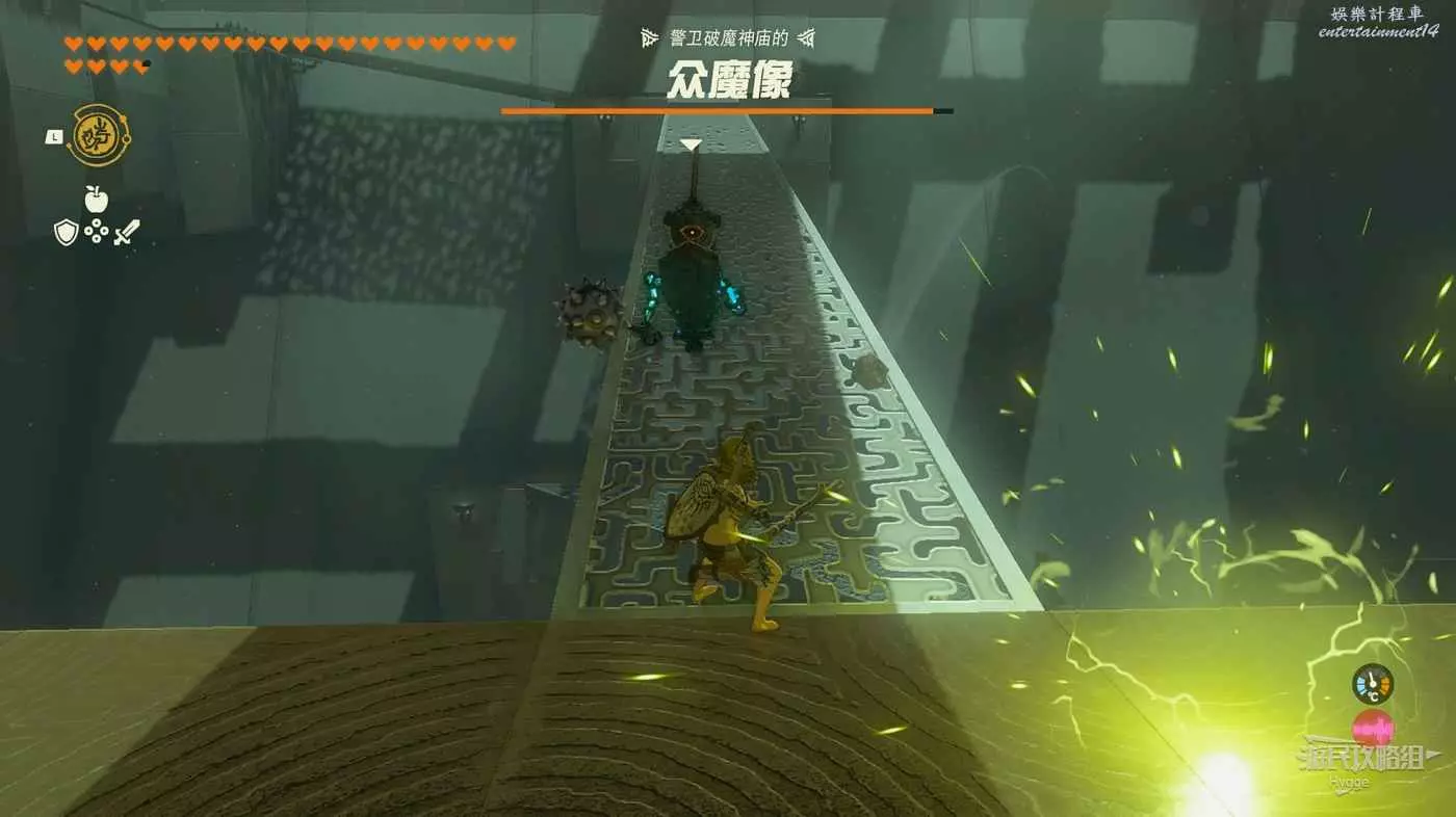 該神廟的內容為盾牌練習,使用盾牌反彈敵人的遠端攻擊即可。