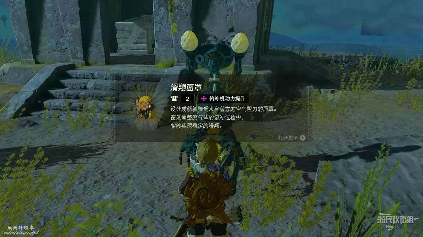 離開神廟後與旁邊的管家魔像交談,再次進行挑戰。若在35秒以內完成則可以獲得防具【滑翔面罩】。