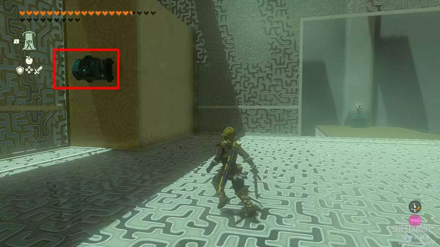 隨後轉動旁邊的十字開關使旁邊石塊上下層的石板向左。