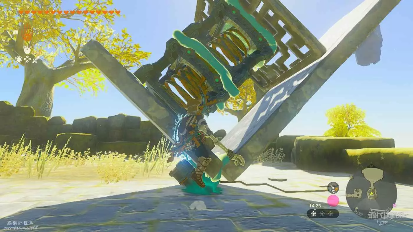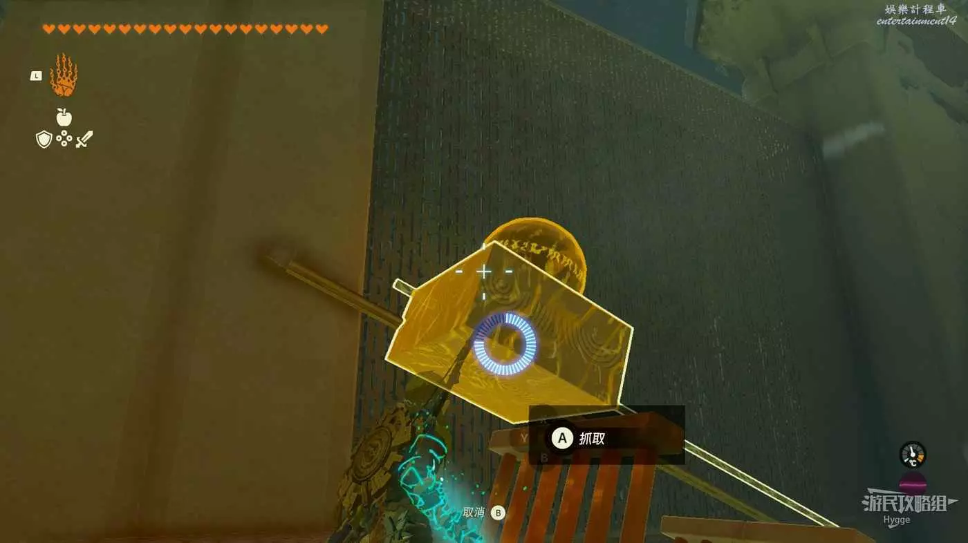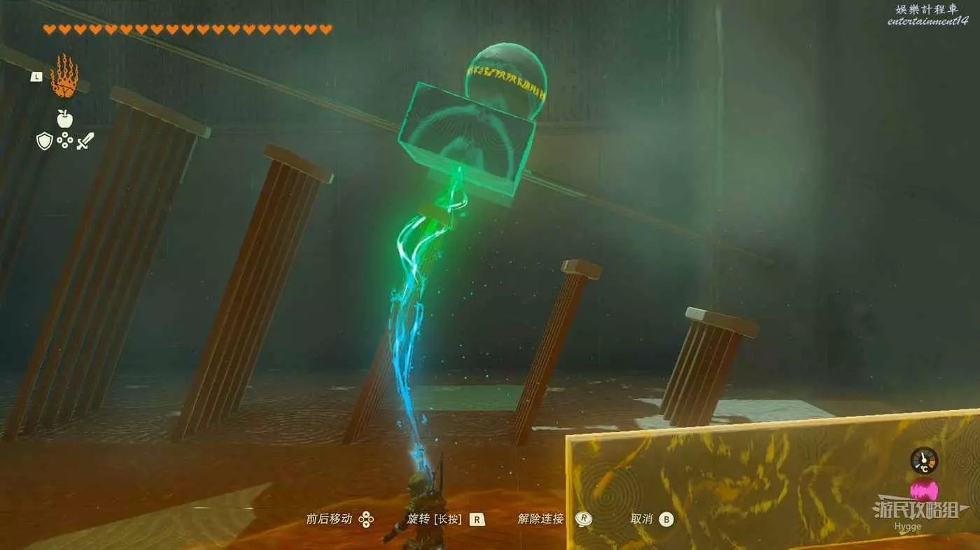 隨後我們可以破壞結構趁球尚未完全滾落時用究極手拿到石球。