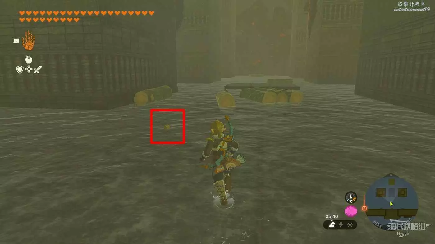 在剛剛穿過前方的門後,從左側的水池底可以找到一個寶箱。