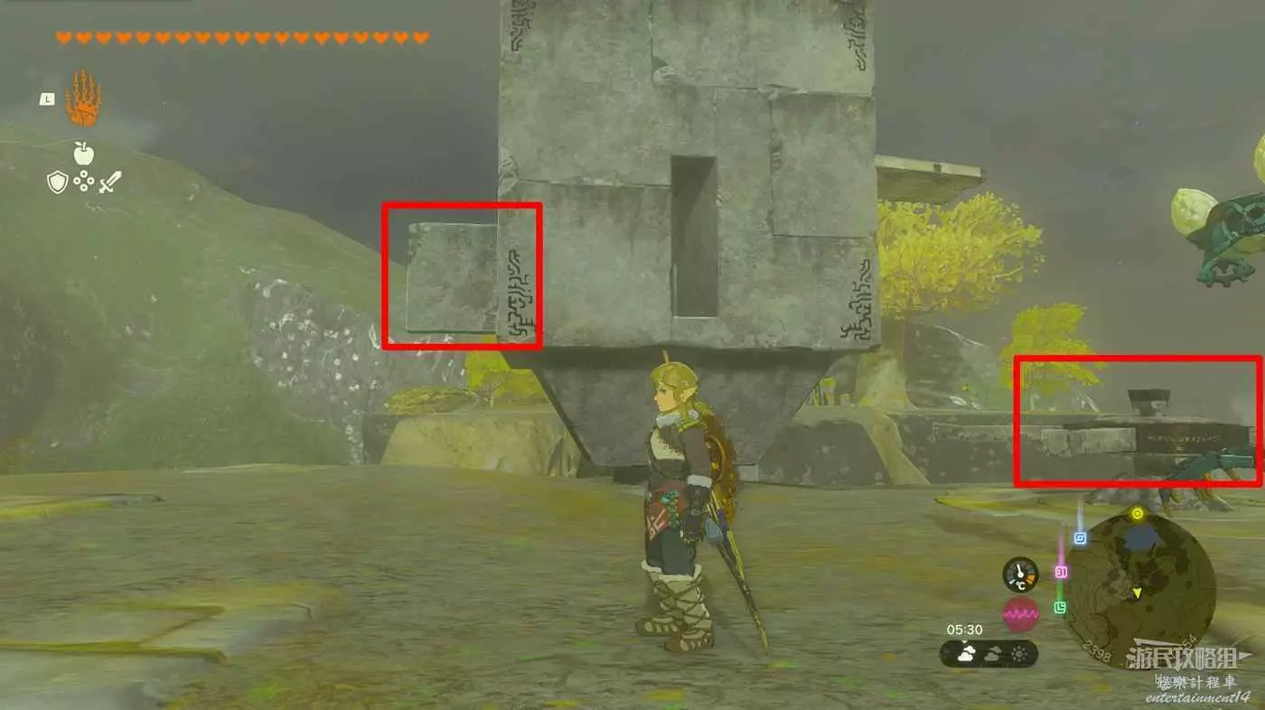 將石板高舉再落下即可打開機關完成神廟。