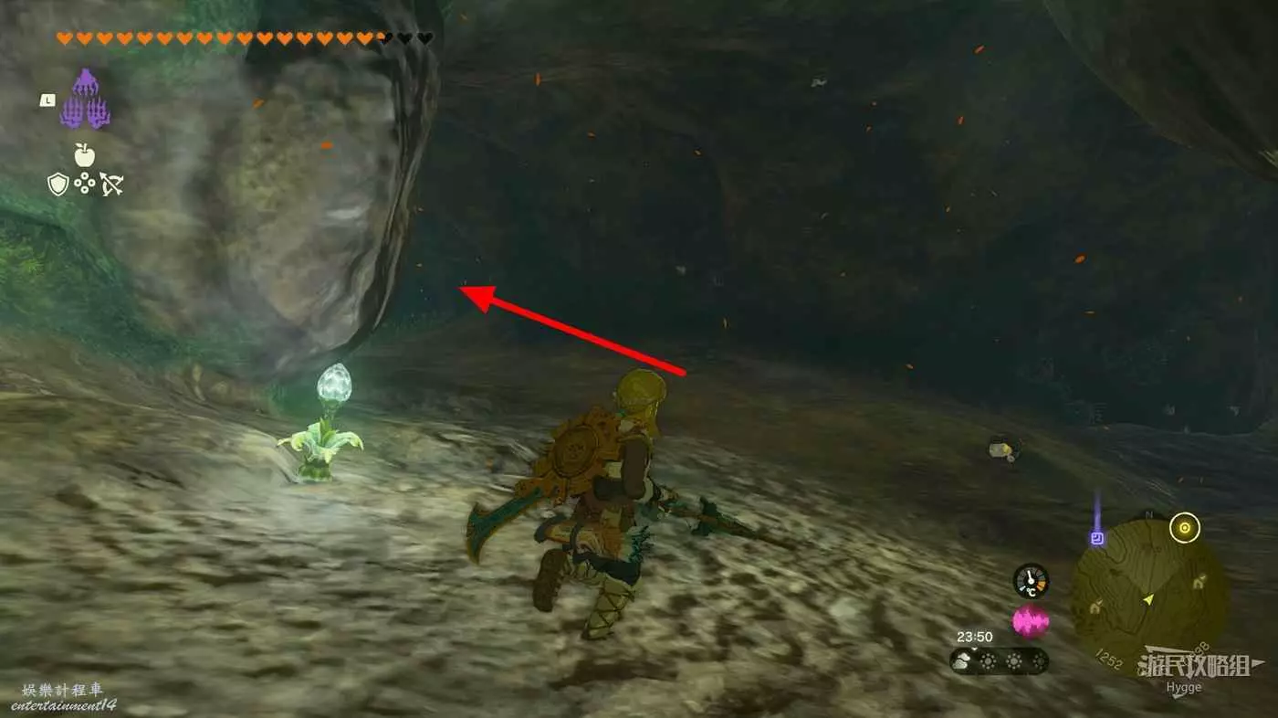 破壞石頭後可以找到一個向左的山洞。