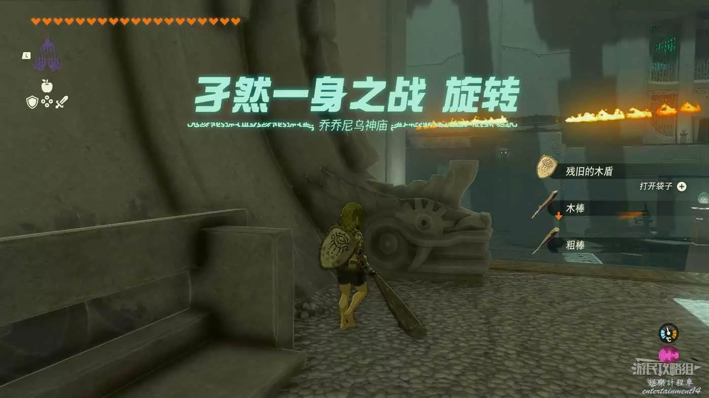 該神廟為無法使用自帶裝備的孑然一身戰,進入神廟拿到基本裝備後直接向終點走。