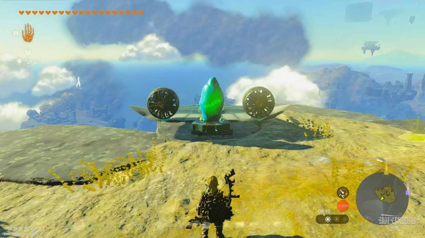 轉動十字開關將機關對準遠處的空島。