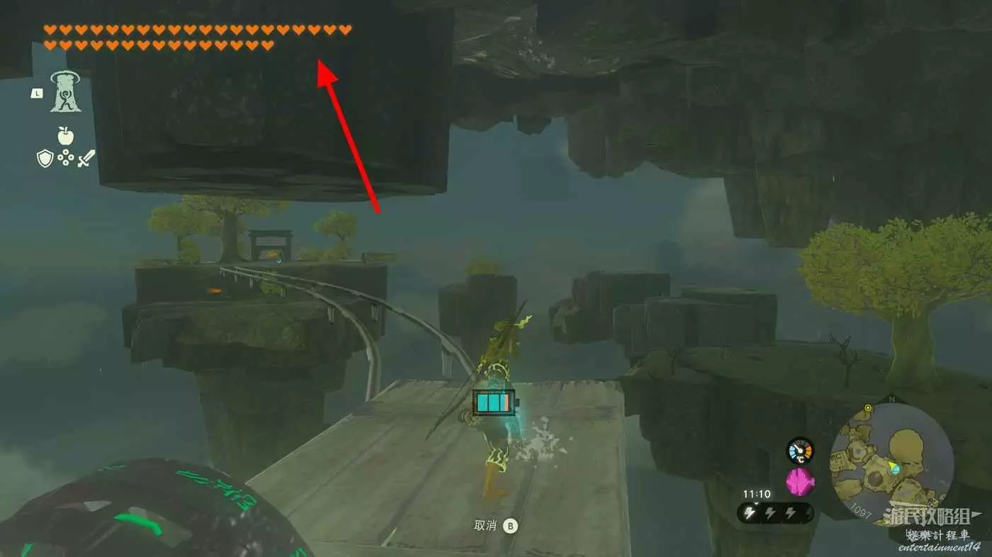 來到最高處空島的中間層,切割藤蔓進入空島內部可以找到水晶。