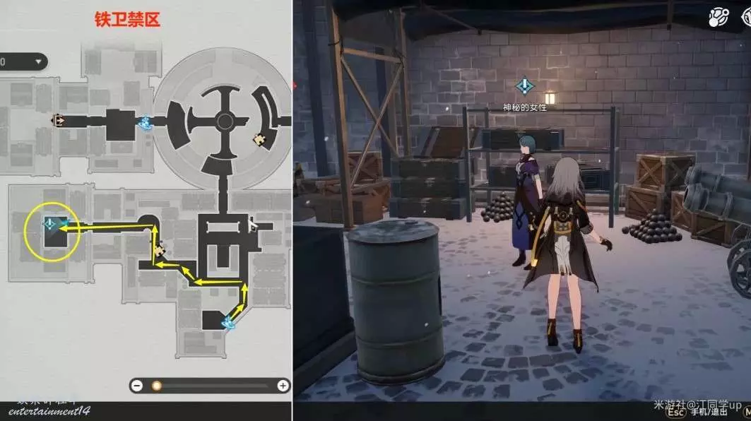 (1)當到達26級時,去下圖【鐵衛禁區】位置,找【神秘的女性】接任務【庸人的容器·其二】