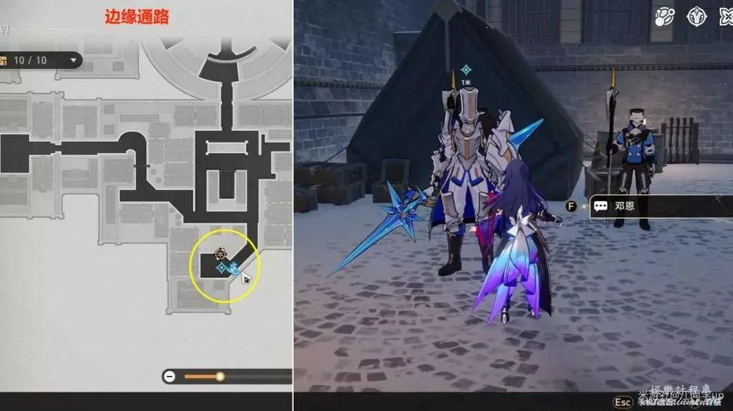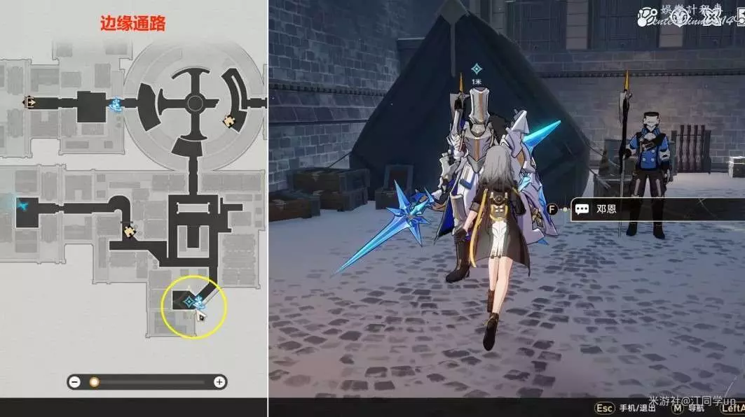 (7)【庸人的容器·其二】第2天的任務很簡單,只需去下圖【邊緣通路】位置找【鄧恩】再次對話後,任務【庸人的容器·其二】第2天任務就完成了