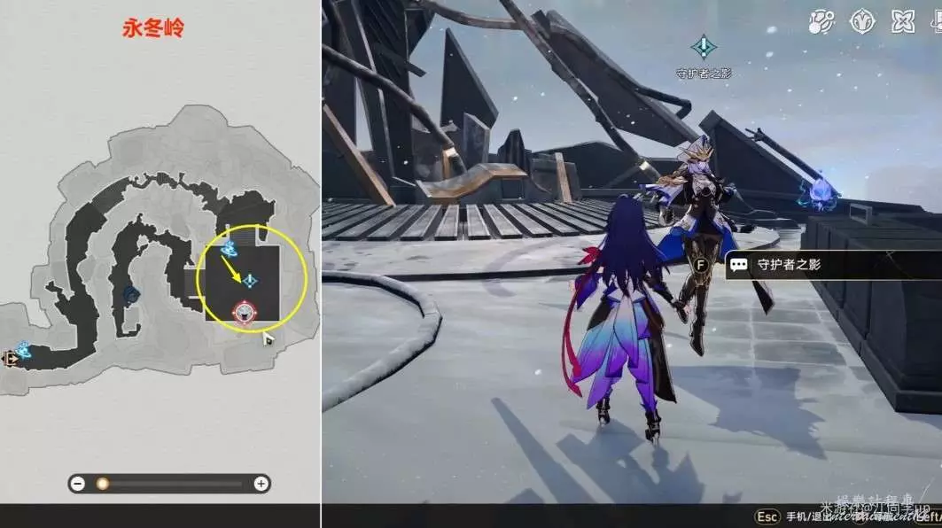 (1)當到達27級時,去下圖【永冬嶺】位置,找【守護者之影】接任務【庸人的容器·其三】