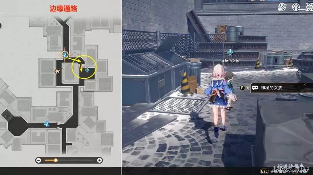 (1)當到達16級時,去下圖【邊緣通路】位置,找【神秘的女孩】接任務【庸人的容器·其一】
