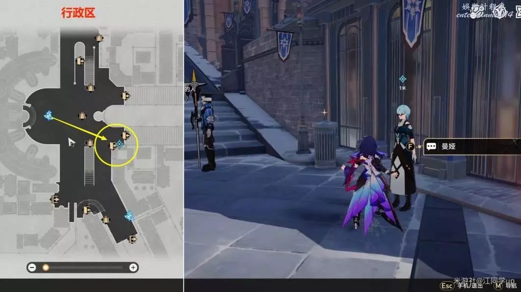 (5)最後去下圖【行政區】任務位置,找【曼婭】對完話後,該系列3個任務完結