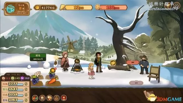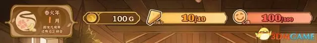 ①基本資源條:包含當前時間、金錢、行動力與心情。