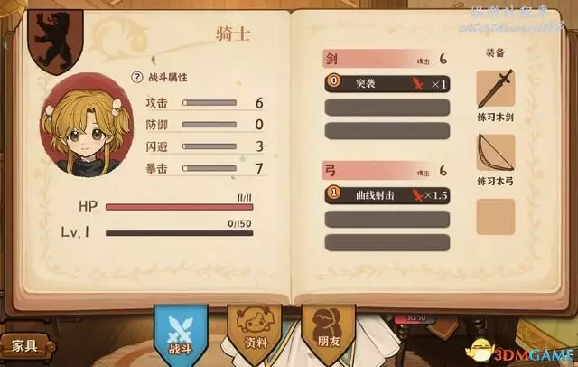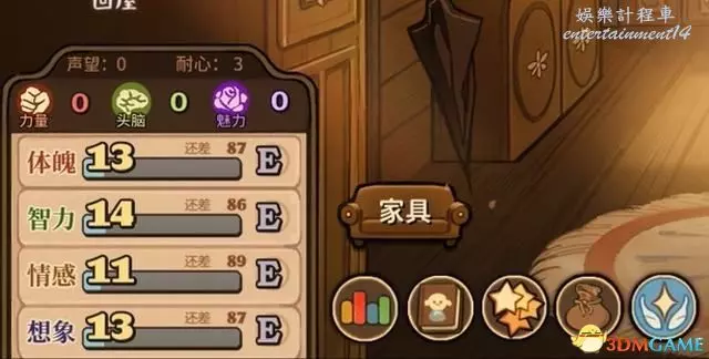 ②屬性與功能表列:基礎屬性分為體魄、智力、情感和想像四種,分別對應戰鬥、學術、交際與藝術四大類發展方向。