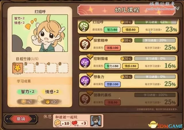 首先進入的是幼年期,選擇對應的“父親形象”,完成需求可以獲得一些金錢獎勵(但不多)。