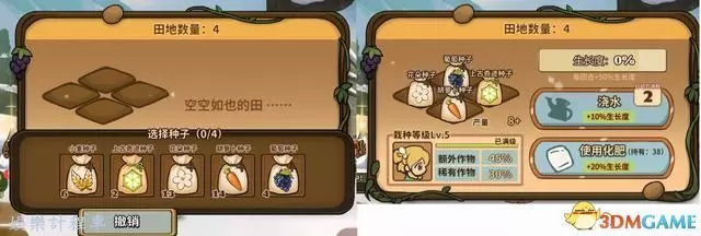 關於種植,使用通過購買或戰鬥獎勵獲得的種子進行播種,在兩個回合後獲得收成。