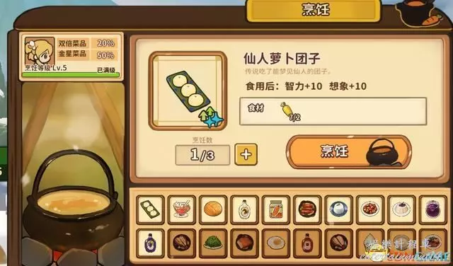 每次烹飪均可獲得烹飪經驗,提升等級後可以增加製造高級菜品的幾率。