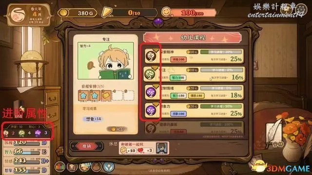 每當完成課程時,都能提升一部分的進階屬性。