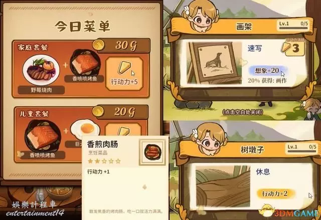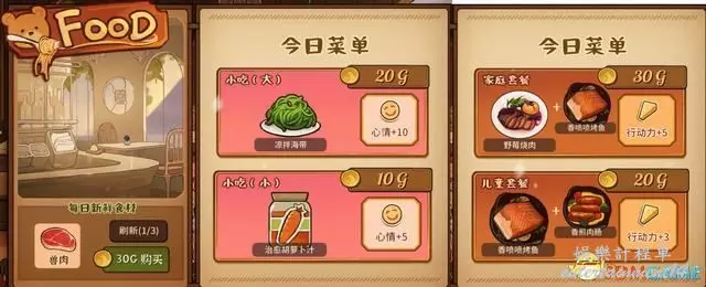 主食對應的是消耗金錢恢復行動力,小吃則是恢復心情。