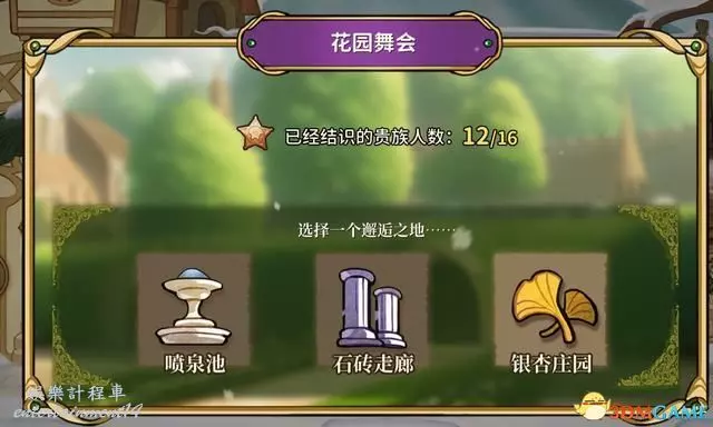 花園舞會是進行“社交對戰”的位置,難度從左到右遞增。
