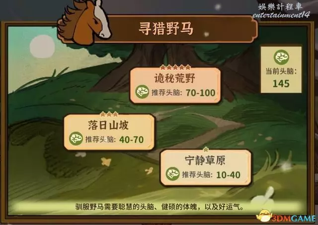 尋獵野馬功能在少年期的第20個回合左右觸發,根據角色的頭腦值進行尋馬。