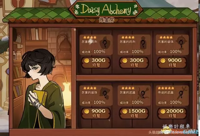 最後是煉金房,依據玩家的頭腦值進行物品的修復,成功率也受技能的影響。