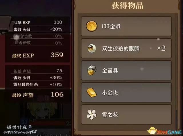 根據戰鬥中的表現,完成戰鬥時可以獲得聲望與物品獎勵。
